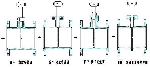 5、 補(bǔ)償用壓力變送器在前直管段上,溫度變送器(或鉑電阻)裝在后直管段上距離節(jié)流裝置2D處。