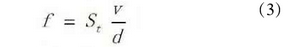 式中:f為渦街頻率,Hz;S,為斯特羅哈爾常數(無量綱);v為流體經過發生體時的平均流速,m/s;d為發生體的特征寬度,m。