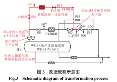 通過在原油井計量分離器氣相出口增加1路氣相計量管線和高級一體化孔板流量計,實現不同氣量的油井在不拆卸更換孔板的情況下,利用切換流程使用相對應的測量范圍的孔板進行計量。