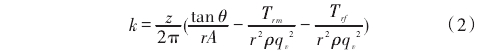 式中:z表示葉片數(shù);θ表示葉片傾角;r表示葉輪半徑;A表示過(guò)流面積;ρ表示液體密度;qv表示瞬時(shí)體積流量;Tm表示摩擦力矩;Trf表示流動(dòng)阻力矩。