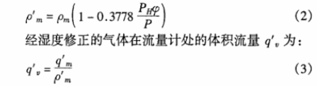 經濕度修正的氣體在流量計處得密度ρ'm為: