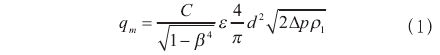 差壓式流量計(jì)工作原理是基于封閉管道中流體質(zhì)量守恒(連續(xù)性方程)和能量守恒(伯努利方程)兩個(gè)定律。根據(jù)GB/T2624.1--2006《用安裝在圓形截面管道中的差壓裝置測量滿管流體流量第1部分:一般原理和要求》中的規(guī)定:以一次裝置(如孔板、噴嘴、文丘里管)安裝在充滿流體的管線中為依據(jù)確立的。裝人一次裝置后裝置的上游側(cè)與喉部或下游側(cè)之間產(chǎn)生一個(gè)靜壓差。根據(jù)該壓差的實(shí)測值和流體流動(dòng)的特性以及裝置的使用環(huán)境,并假設(shè)該裝置與經(jīng)過校準(zhǔn)的一個(gè)裝置幾何相似且使用條件相同就可以確定流量。簡單而言就是根據(jù)流量與壓差的關(guān)系,通過測定壓差,從而計(jì)算出流量,關(guān)系式如下: