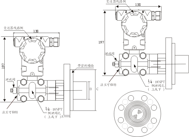 HD3351LT型的安裝法蘭標準按ANSI,法蘭有3〃和4〃規格,法蘭等級分為